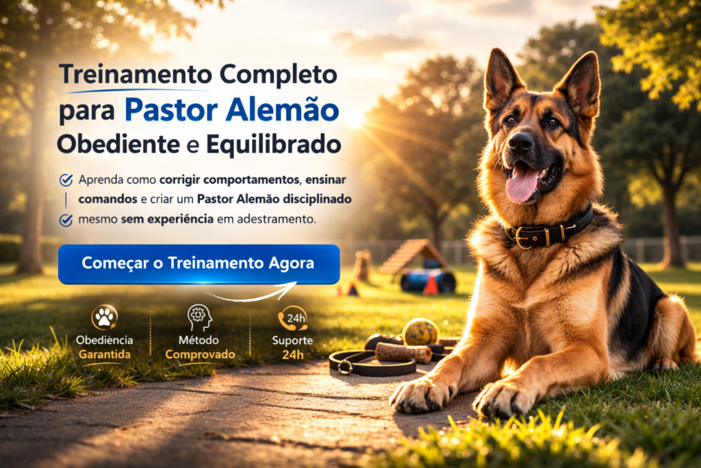 Descubra o treinamento passo a passo utilizado por donos que conseguiram transformar completamente o comportamento do seu Pastor Alemão.